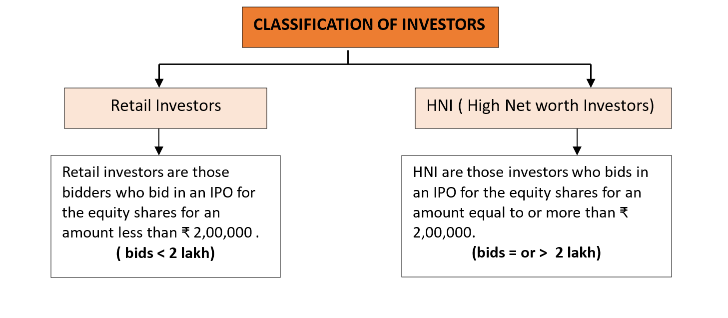 Retail investors are those who bid in an IPO for an amount less than ₹ 2,00,000.