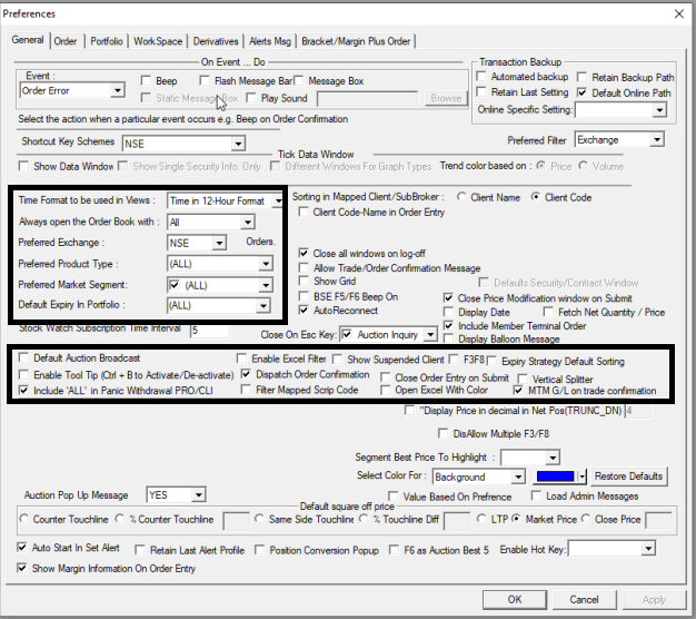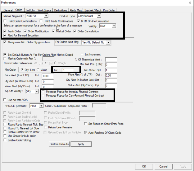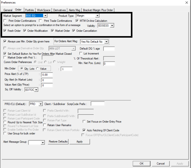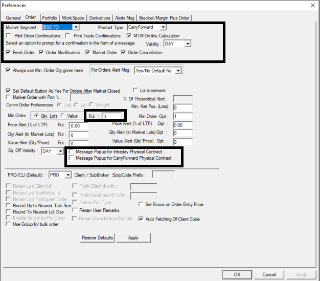 4) ORDER SETTINGS (BSE FO): - - Match all setting then click apply and click ok button.
