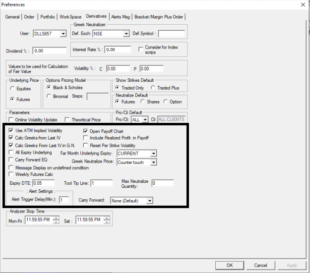 7) DERIVATIVES SETTINGS : - Match all setting then click apply and click ok button.
